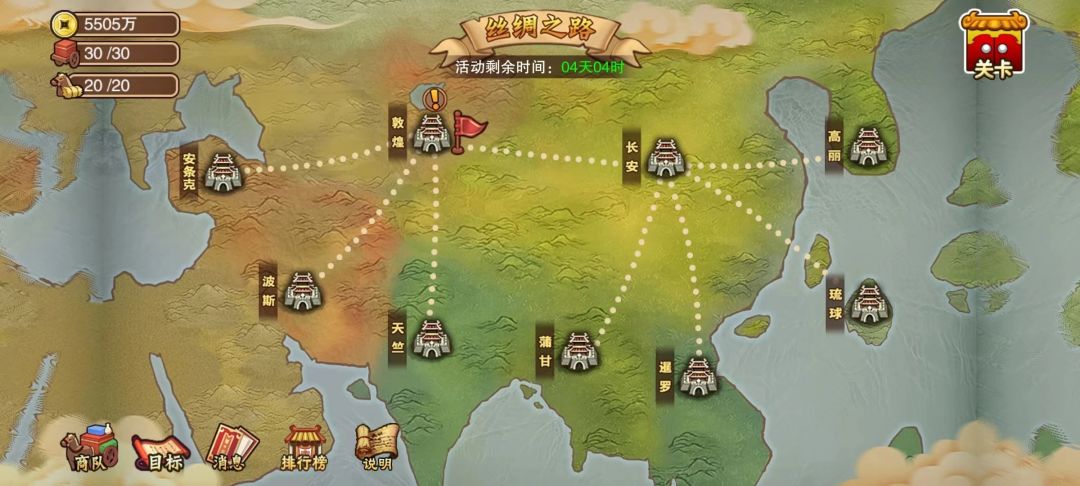 丝绸之路是通过使用铜钱在各城市之中通过购买和贩卖商品以赚取差价的一种玩法。