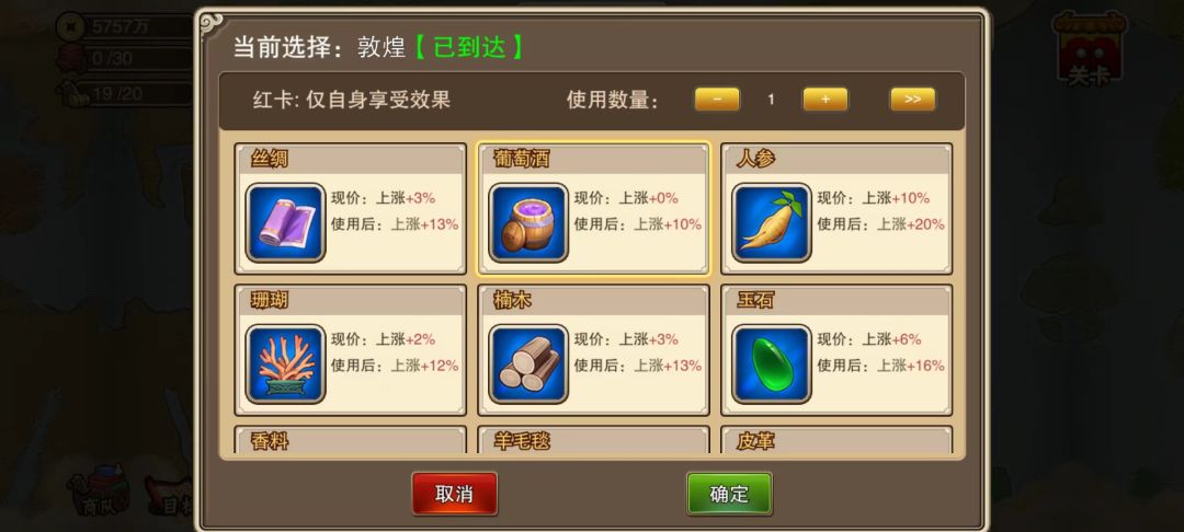 ③红卡,使指定城市的指定商品,在一定时间内上涨。仅对自身生效。