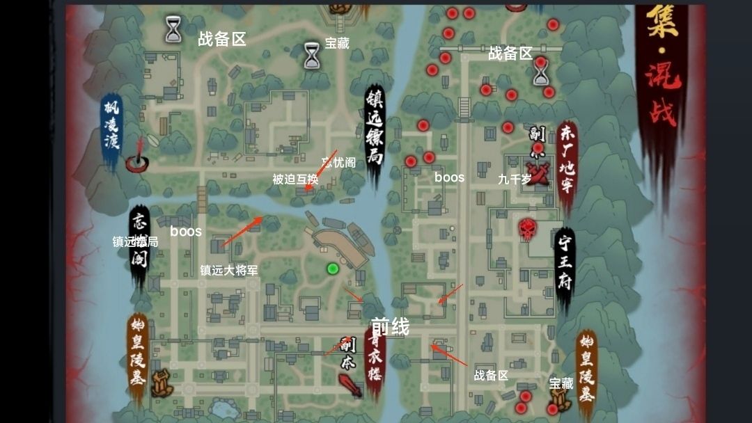 一,准备阶段;此地图一分为二(左右),由玩家帮主在各地Npc接任务,开启玩法,率先击杀对面小怪3000名的为进攻方(所有玩家均可参与,小怪经验上调)。开启后,进入准备阶段(十分钟),双方boos会发出(召集令、悬赏令)所有玩家会接到令,(前五分钟自选阵营,后五分钟由系统平衡双方元气安排),此时双方boos会各派出到对方的五人精英探查先锋(镇远:浪大侠带队。东厂:海大富带头),他们会隐藏身份,可由玩家找出击败,获得大量奖励。
