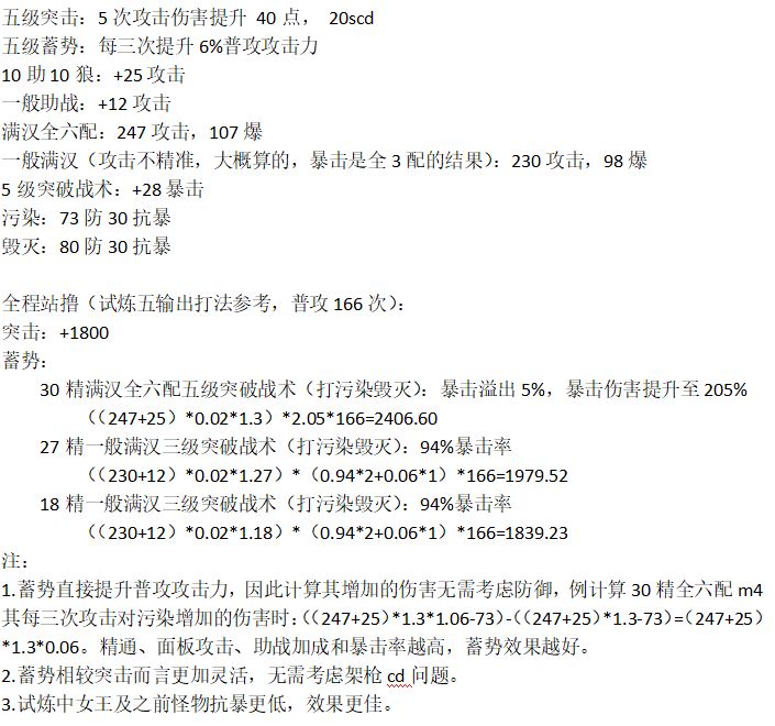 根据其他大佬的反馈,附加了精通对蓄势的影响。