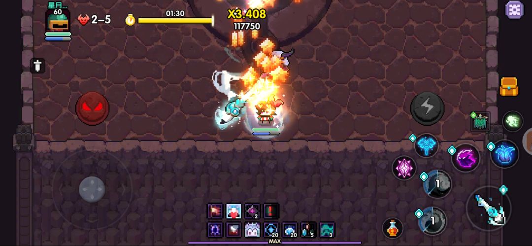 左边这个是一次瞬间的爆炸,能清空场上小怪,如果控制好爆炸时间,则能缩短时间