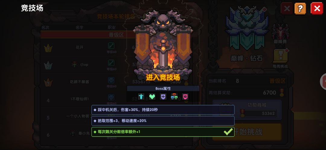 前面大家的得分都是差不多的,所以基础得分最重要的部分是对最后怪物造成的伤害上,伤害越高,分数也就越高