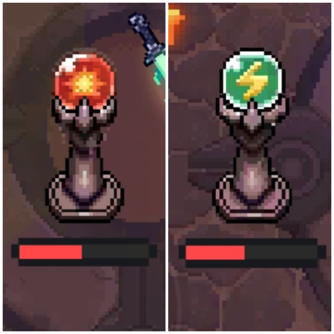 踩下这个按钮后,会随机出现以上两种魔法阵,分别提供伤害加成和攻速移速,简称红阵和白阵,通常为了打出更高伤害,我们需要赌红阵
