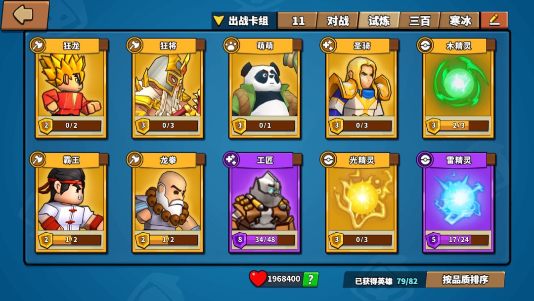 阵容组成:狂龙、狂将、萌萌、圣骑、霸王、龙拳、工匠、木精灵、光精灵、雷精灵