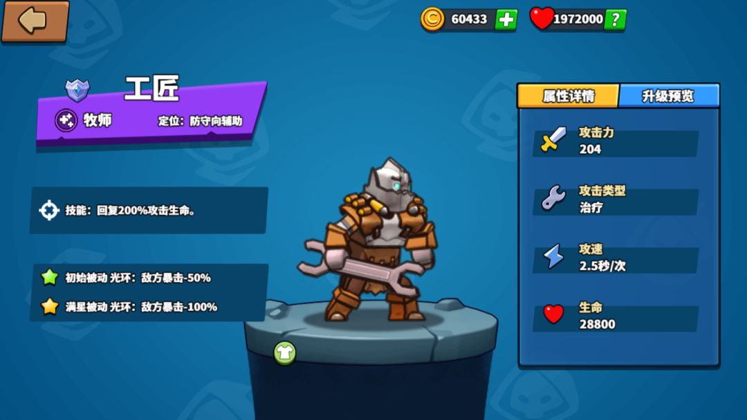 3、根据对方阵容情况判断,如果对方先上狂将,我们就上工匠克制对方的暴击,如果对方上领主,我们优先上圣骑,同时优先将狂将升满。
