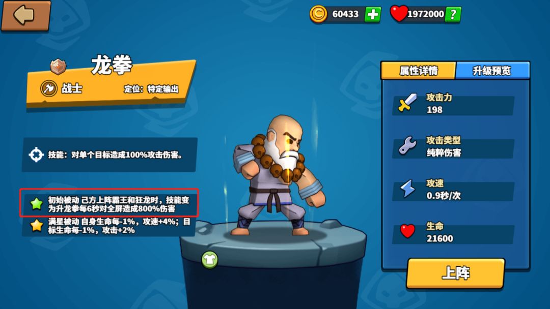 3、前期可能会处于弱势,发育就显得至关重要了,在上满基础阵容后优先升满狂将和其他战士英雄