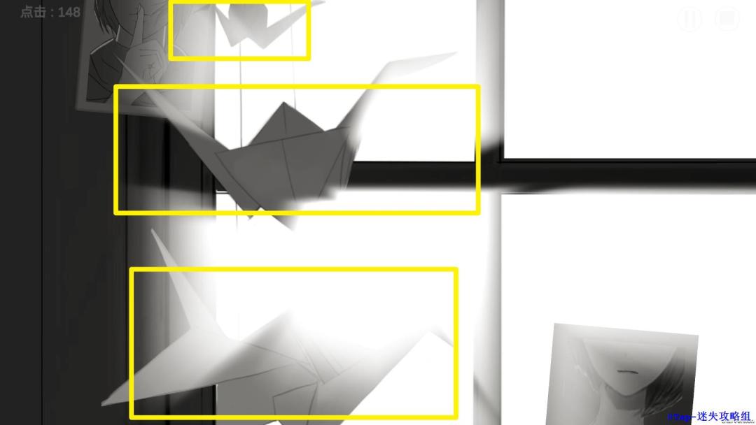 17.出现三个纸鹤,点击纸鹤使其全部静止。需要按照纸鹤摆动的速度,由慢到快点击。先点击摆动最慢的纸鹤。
