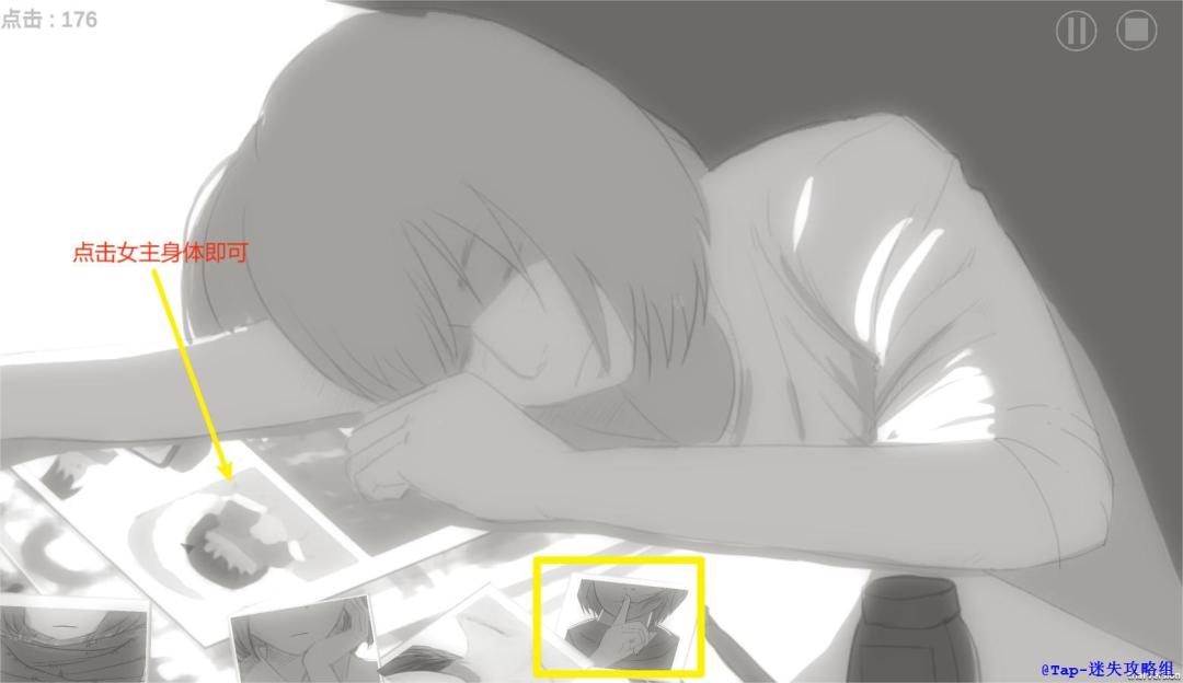 7.收集该场景中出现的照片,注意观察女主手中的画笔是在画男生还是女生。然后点击女主手中的画。
