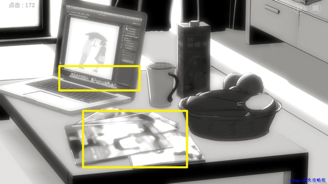 6.收集纸鹤、信封、马克笔、牛奶,最后点击水杯倒水进去。(注意纸鹤、信封、马克笔、牛奶及照片会随机出现在该场景及其前后场景中)