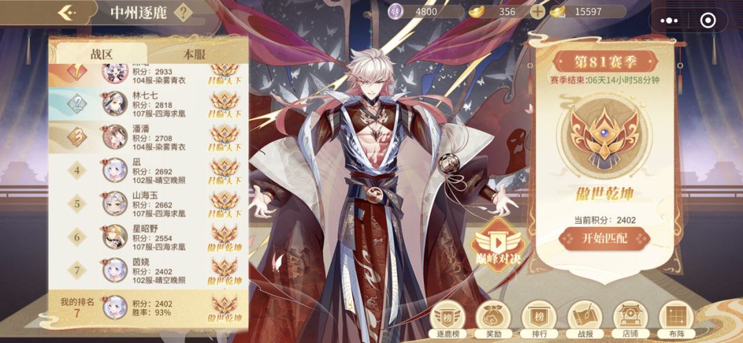 前二十名奖励高,最少给一个凤凰令,可以在<招贤阁>结交稀有始祖和侍臣。