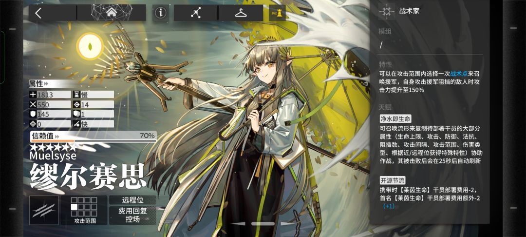 近战位特性为攻击偷取敌方10点攻防(最高250点),这个偷取和土豆那个偷取是不一样的,要再次复制干员才会重置,也就是实际流形的面板还要在复制后的基础上再+250点攻防,这个数值给的还是非常大方的,近战流形的抗压能力得到了一定保障,让萌新也能用的舒服。