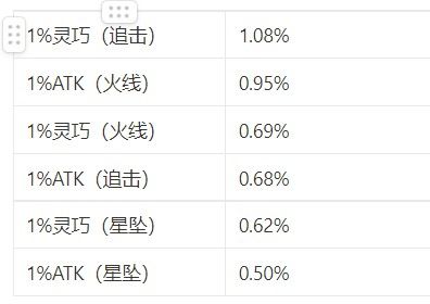 1%武器ATK增幅为0.10%;