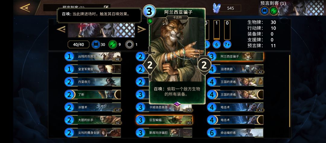 同时卡组里面的诈骗犯可以不要,这边推荐如果有1费传说可以放进去。(如果怕可以带骗子,但基本用不到)