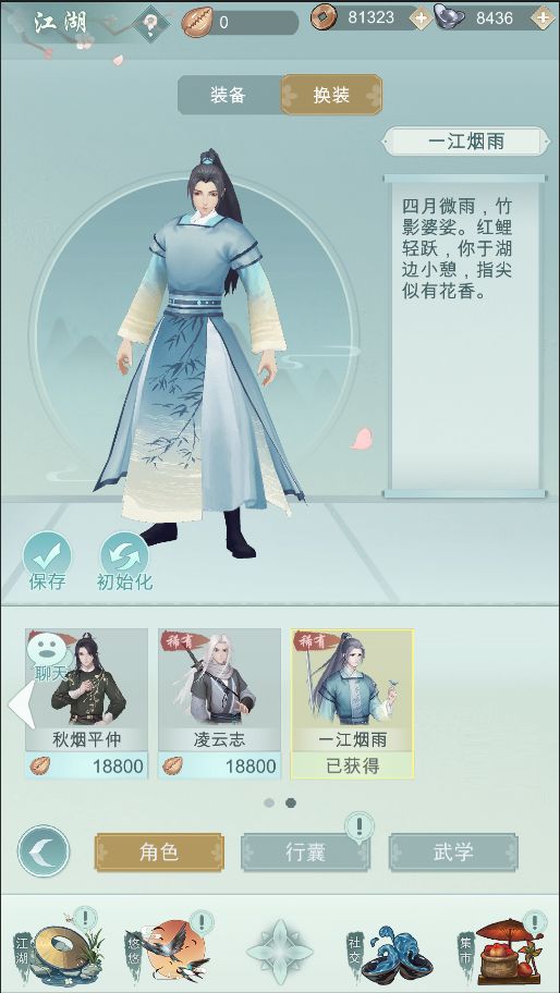 划重点:人物完成换装之后,对应的所有界面都会统一更换,比如侠客界面的3D形象;人物头像的2D形象;出行、剧情、历练界面等等都会显示与之匹配的服装效果。