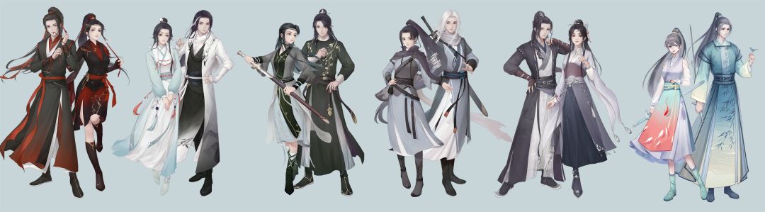 下面是部分服装目前的展示效果,每件服装都会有对应的男女风格,但是不能男扮女装或者女扮男装