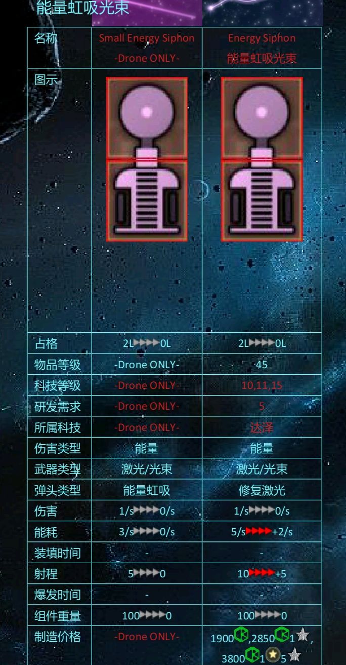 众所周知,eh有95种武器,有些武器特别热门,如圣炮,死光等。而这个帖子要介绍的武器我觉得应该没什么人用,他它就是“能量虹吸光束”。(上图