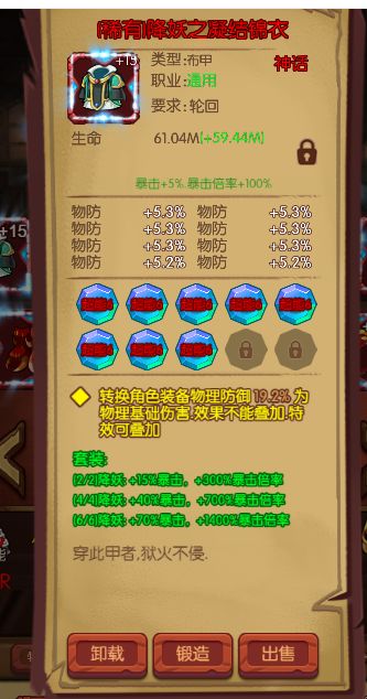 8:打造的轮回装备属性 ,套装属性,伤害属性都是随机出的 看运气