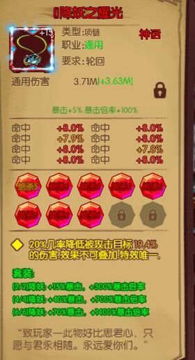 项链宝石:绝杀宝石 洗涤前期暴击 轮回后命中