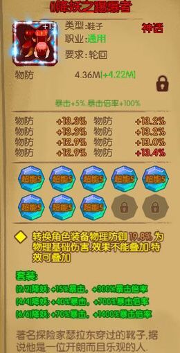 鞋子宝石:超能宝石 词条物理防御百分比