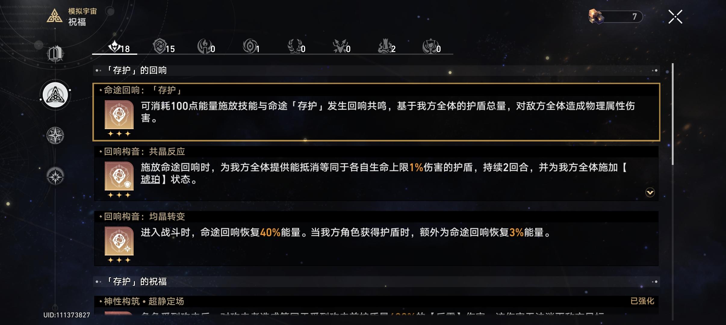 可以用火主,外加前期4星的伙伴,阵容里要有三月七,感觉奶妈都不太需要,进图所有人满盾,要有反震+加盾解控,其他的存护越多越好,回响琥珀是个好东西,有点盾就行,受到伤害超出盾外的无效,很好防止最后一血的秒杀,准备冲击一下宇宙6