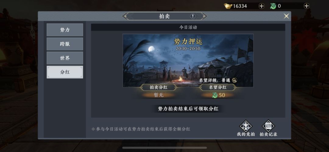 分红的门槛同样也很低,将军参与势力活动即可拿到满额分红,不参与活动也可以拿到部分红(包含了名望分红和拍卖分红)。总的来说,就算是普通势力的将军也可以从分红中获得高于旧版本分红的奖励哟~