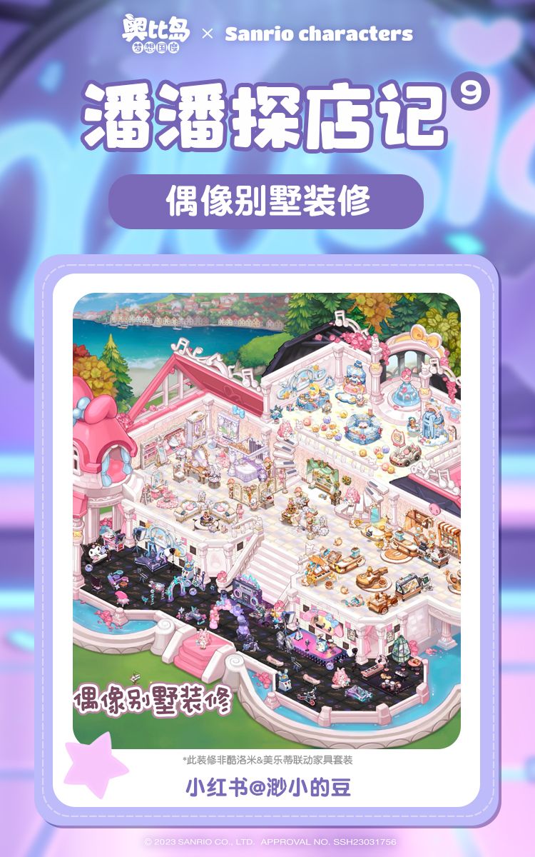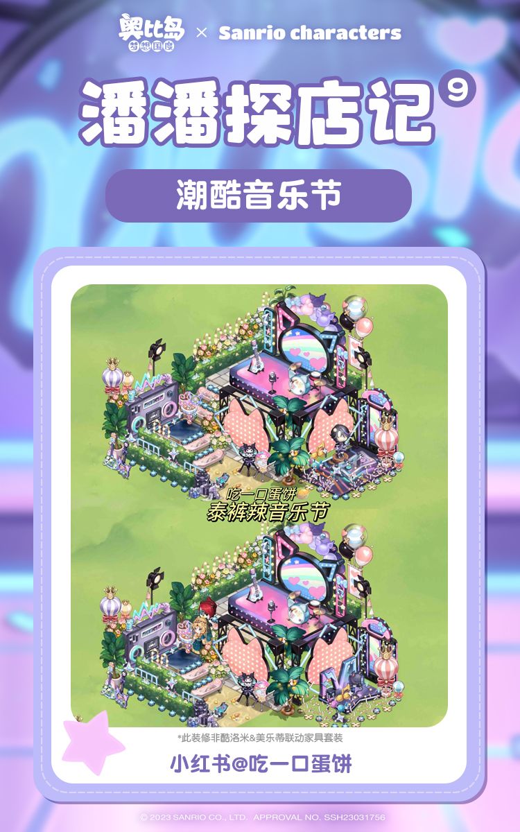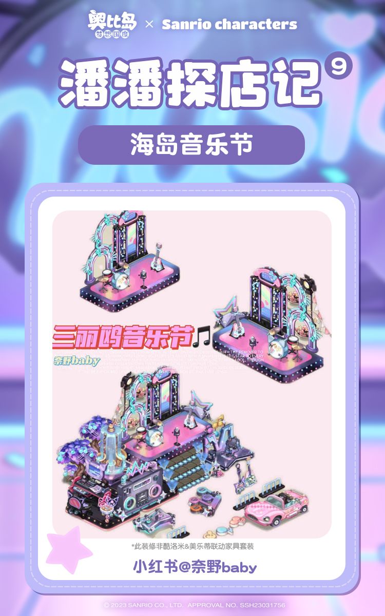 由酷洛米和美乐蒂领衔演唱的海岛音乐会,还在火热举办中!你是否也换上三丽鸥明星主题的家装,参与到这场潮流派对中了呢?参加完音乐节,还可以前往偶像别墅,与酷洛米美乐蒂一起享受悠闲的娱乐时光~接下来就跟随潘潘的脚步,去探索全新主题的装修吧~