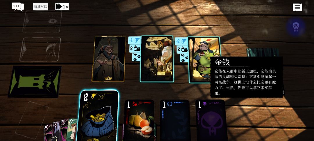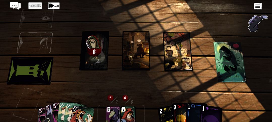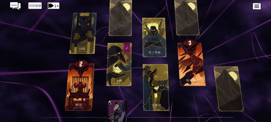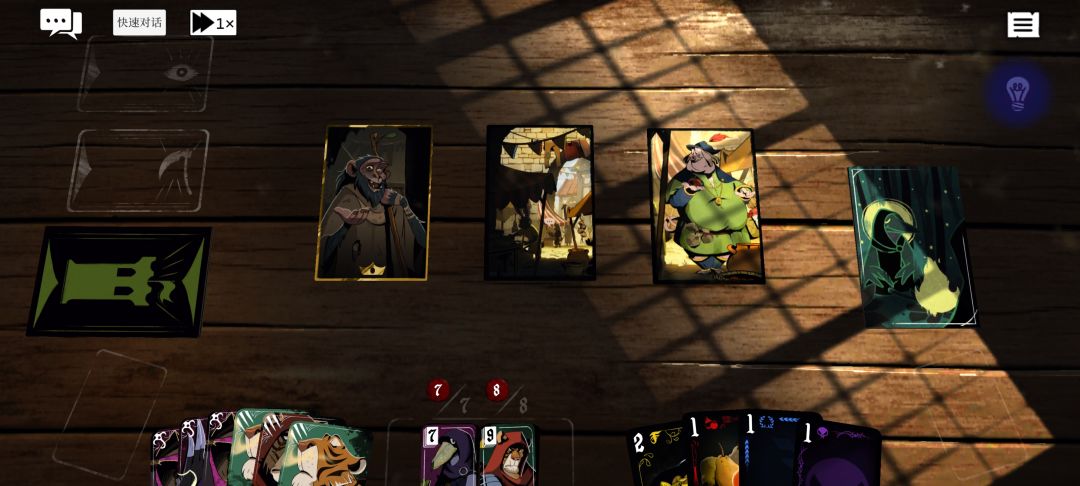 游戏中最经常接触的场景,金色的卡牌代表与剧情相关的关键卡