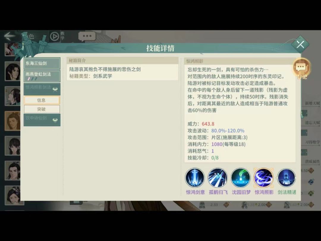 P.S:我没有惊鸿照影,所以图片上显示的是东灵剑气。不要在意这些细节!