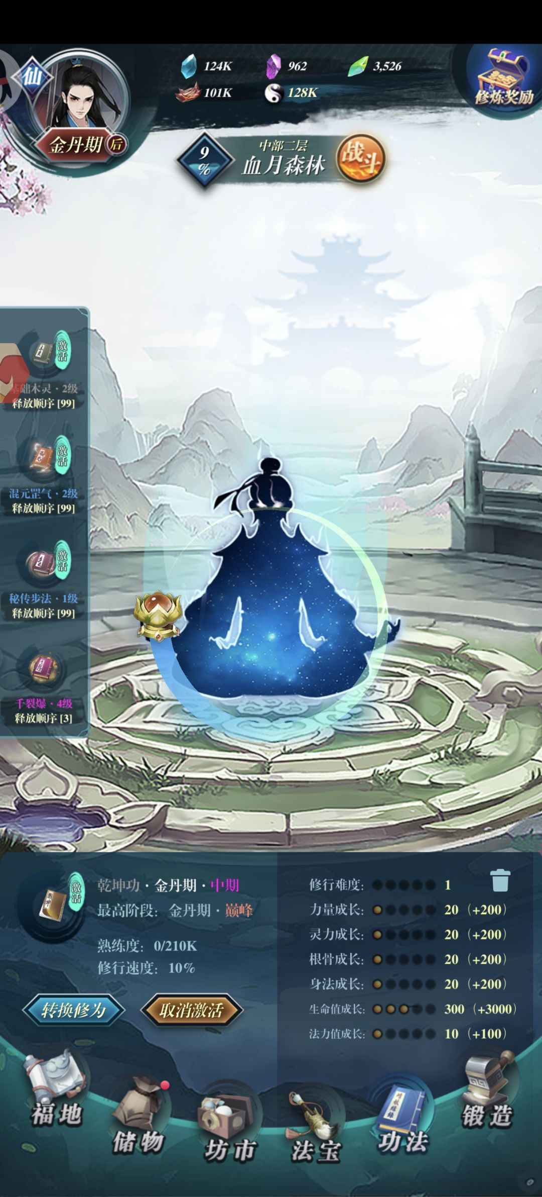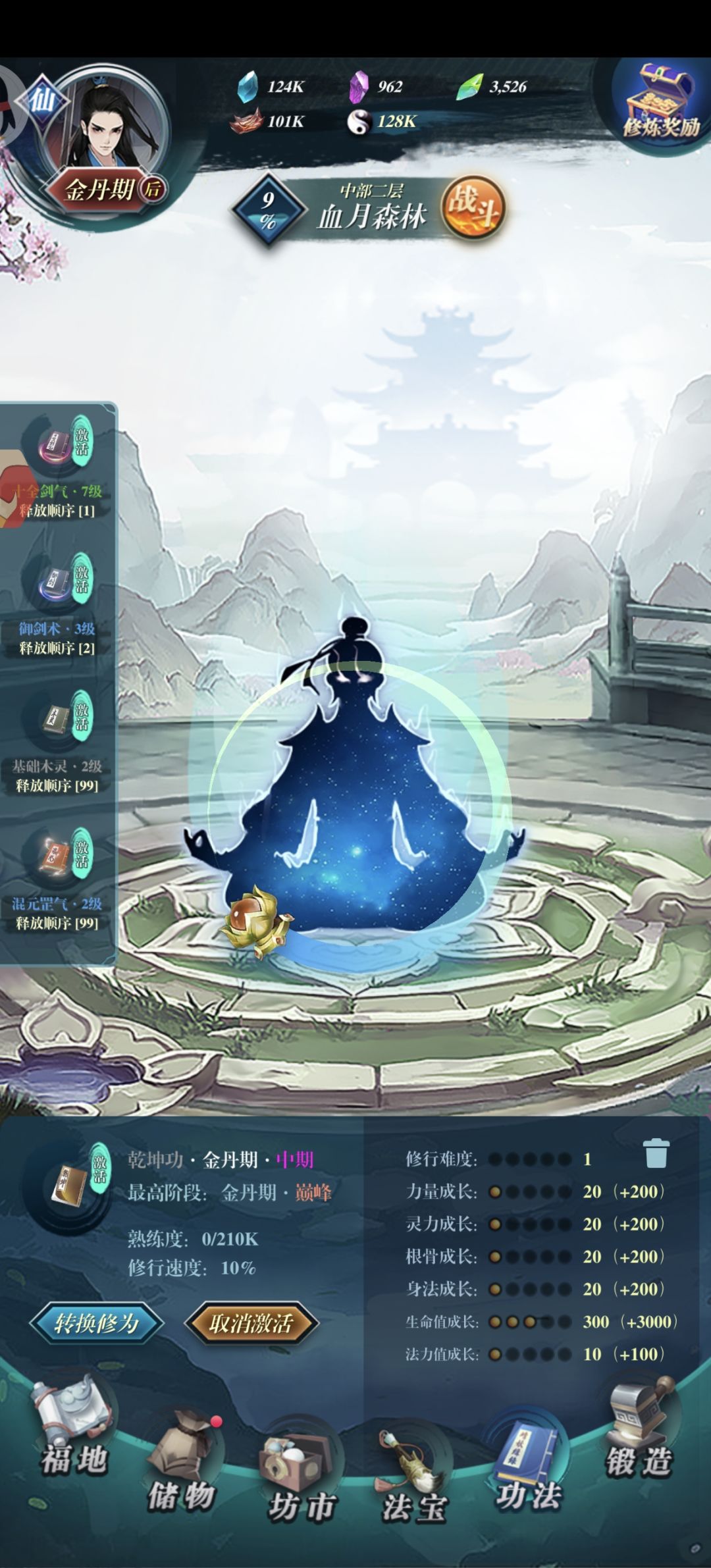 附上我的角色状态属性和装备技能。丹药双防吃,我是物理的所以就吃了物理攻击丹和力量丹。一共四种丹药。接下来就看运气了。三十分钟时间,我是最后十分钟才过去的
