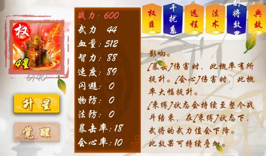可持续叠加,也就是说,直到将目标的武力值将为1