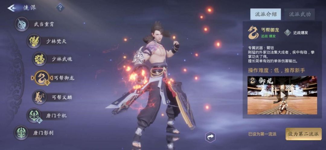 御龙是《剑侠情缘2剑歌行》游戏中丐帮的主力输出流派,近战输出职业的代表。在丐帮的两个流派中,棍法是义麟的强项,而御龙则是拳掌法的集大成者,是目前游戏中,单体输出爆发最高的流派。下面就让我们一起来了解下御龙的武功和加点建议吧。