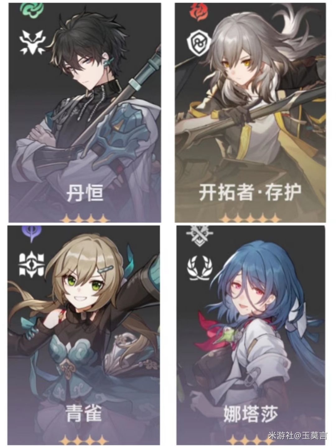 丹恒主c,青雀副c兼破盾,火主和娜塔莎提供后援,配合丰饶基本可以做到血量常青,推荐等级50级,光锥50级,行迹尽量拉高