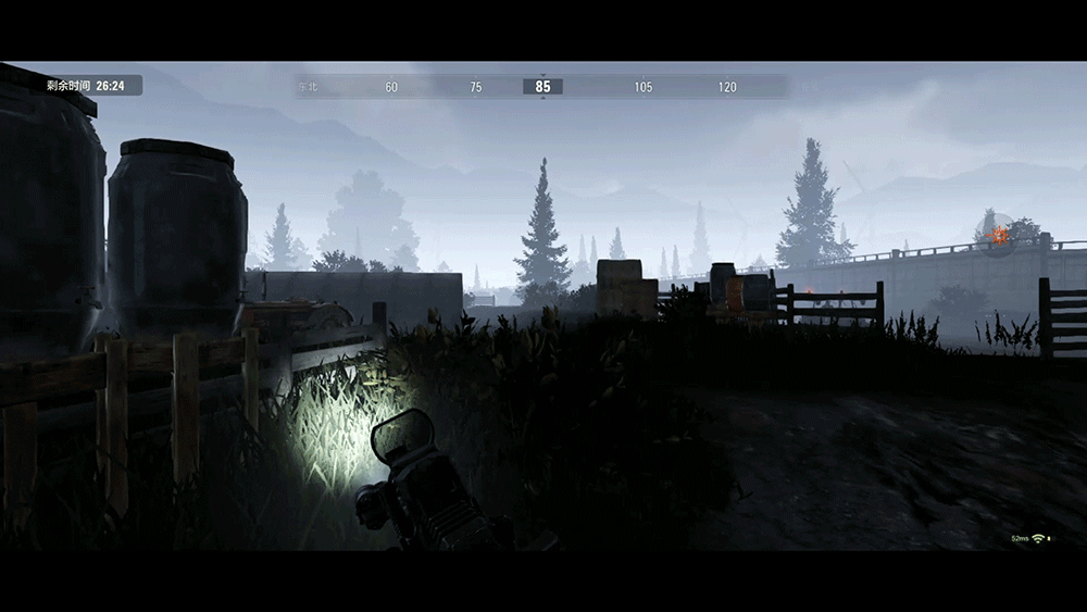 正常情况下,雾天农场的野外能见度比正常模式要低不少,开手电筒虽然能提高一些能见度,但容易变成一只“萤火虫”,暴露自己的位置信息。