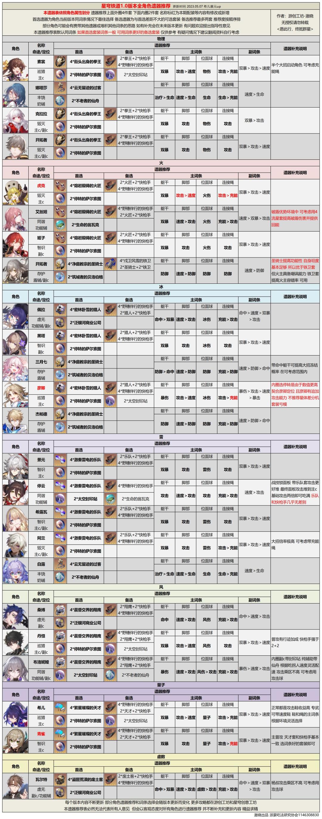 今天为大家带来1.0版本全角色系列第二篇,全角色遗器推荐。光锥、行迹、遗器三者共同构成角色的完整强度,而其中最不稳定的非遗器莫属。