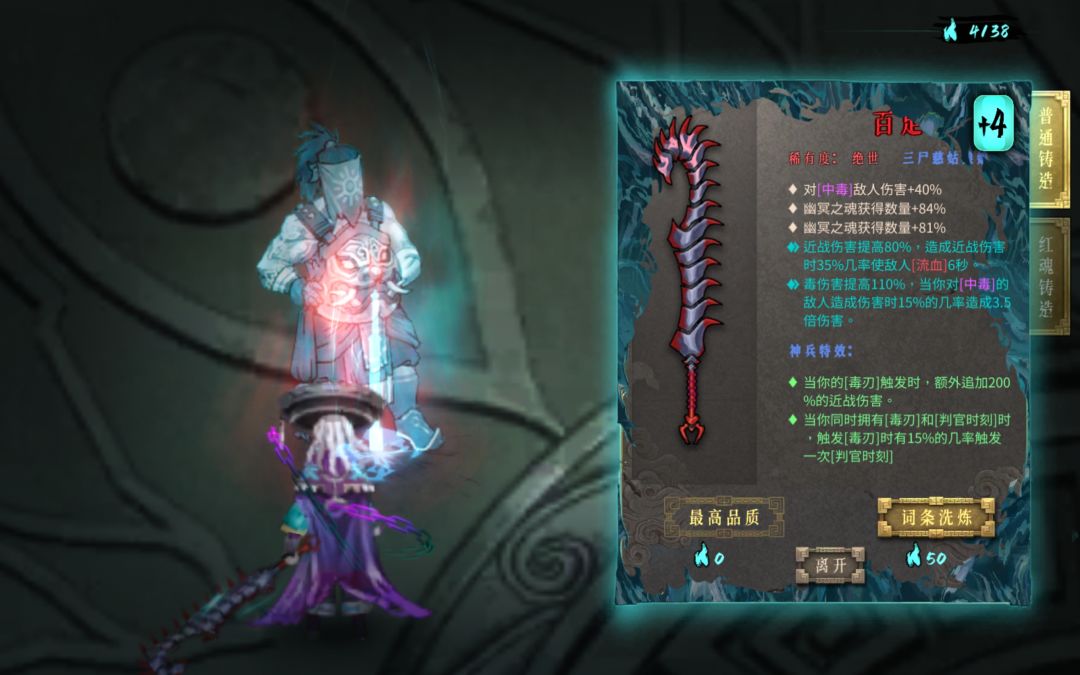 玩法:通过【流血】和【中毒】并输出近战伤害,【判官时刻】也会提供大量伤害。开辟了新的可观的输出方式,通过引爆流血、剧毒、中毒的层数来提供大量伤害。
