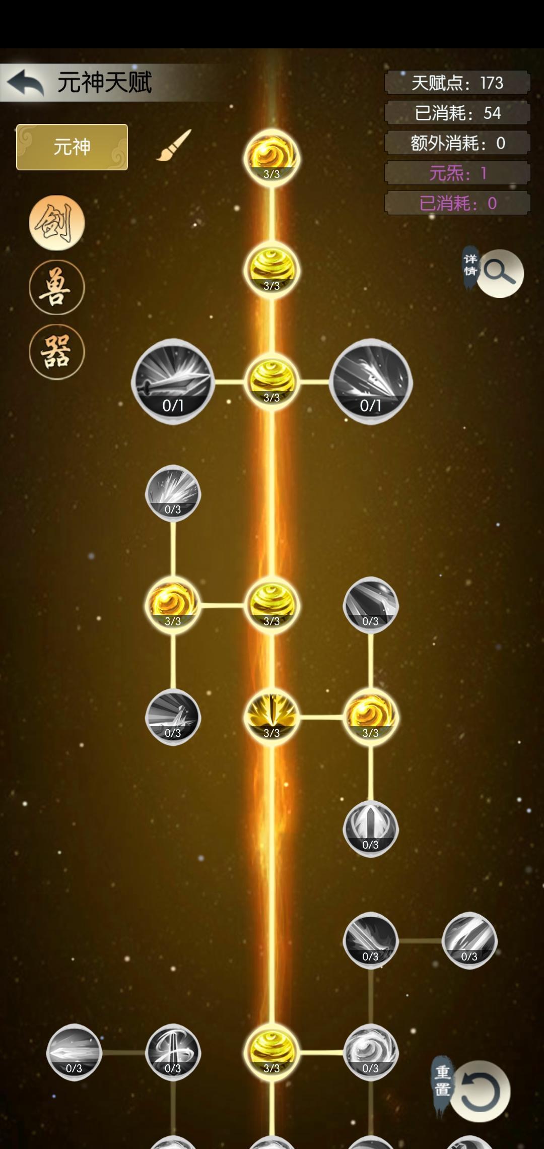 当我们提升元神境界时,将会获得天赋点,消耗一定量的天赋点将可以点亮对应的天赋,现在有剑天赋。还有兽天赋 这些天赋点益处包括三点: