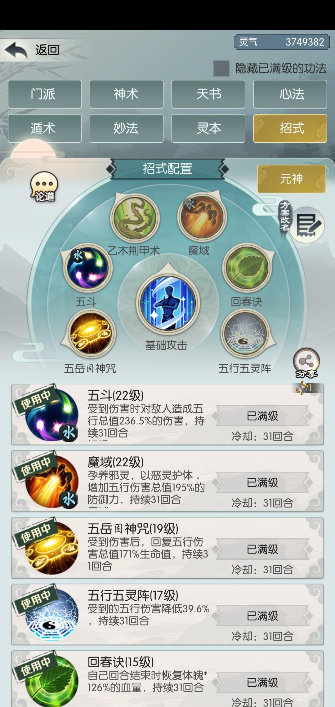 技能是魔域。五岳。五斗。五灵。五鬼。血炼。天赋后面基本都一样。就有一点点改动