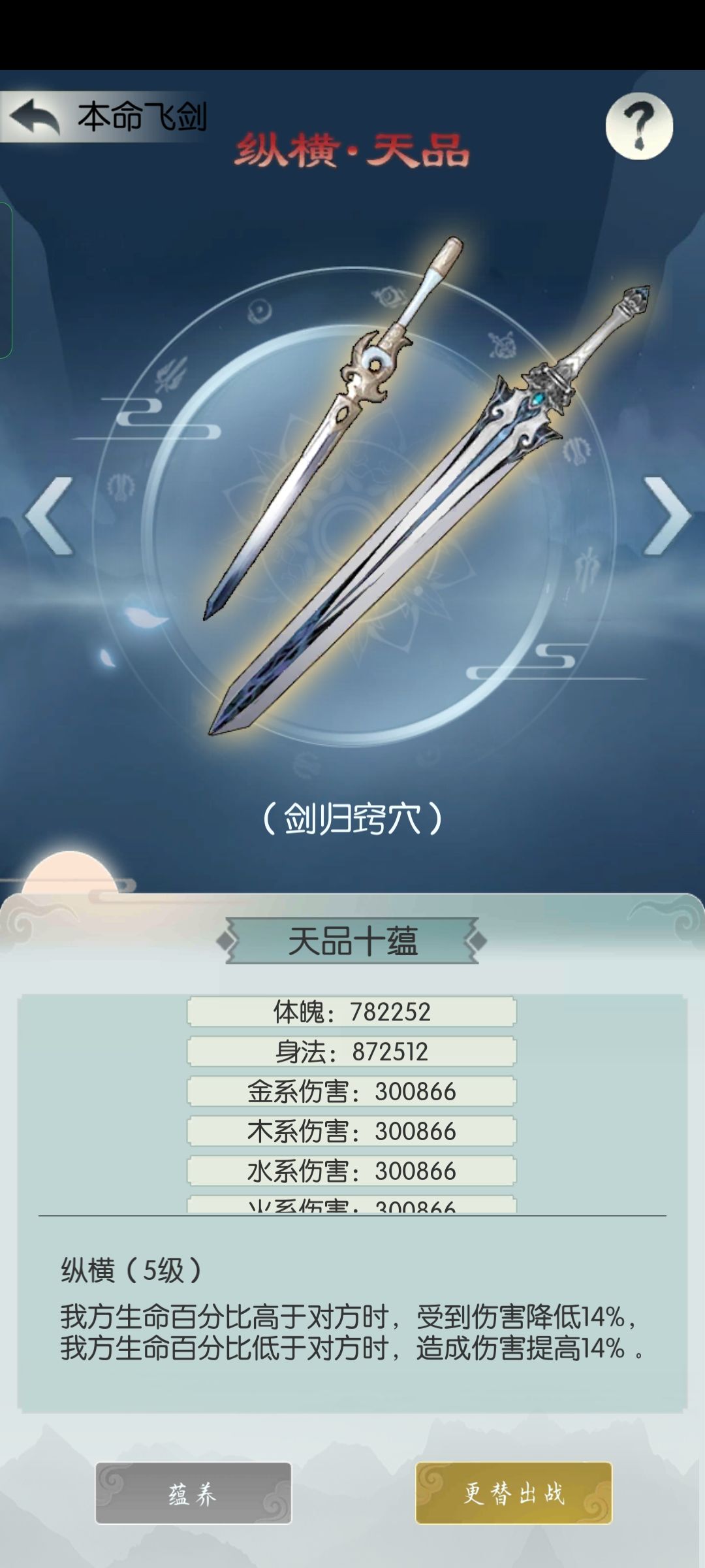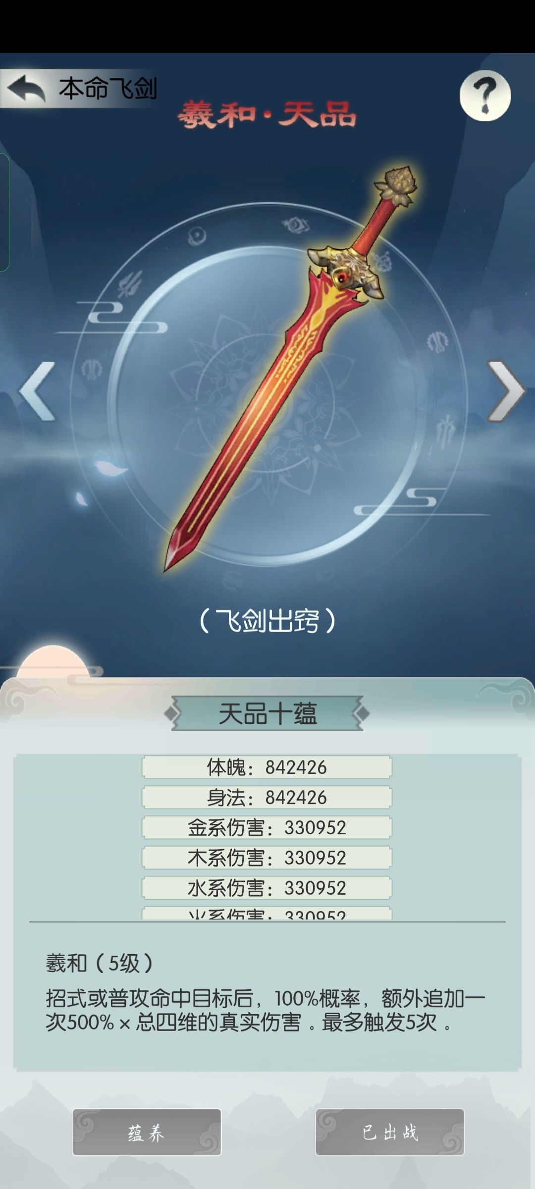 本命飞剑的属性将该部分属性将会先计算至元神属性上,在按比例折算至本尊属性上,但是技能效果将在本尊的战斗中直接生效。飞剑需要消耗对应的道具才能解锁,可以解锁多把飞剑,但是只能选择出战一把。 只有出战的飞剑属性加成和技能效果才会生效。可以通过培养来提升本命剑胎的品级,剑胎的品级越高,出战的飞剑属性和技能效果就越强。应对不同的战斗,合理选择不同飞剑出战方可事半功倍。