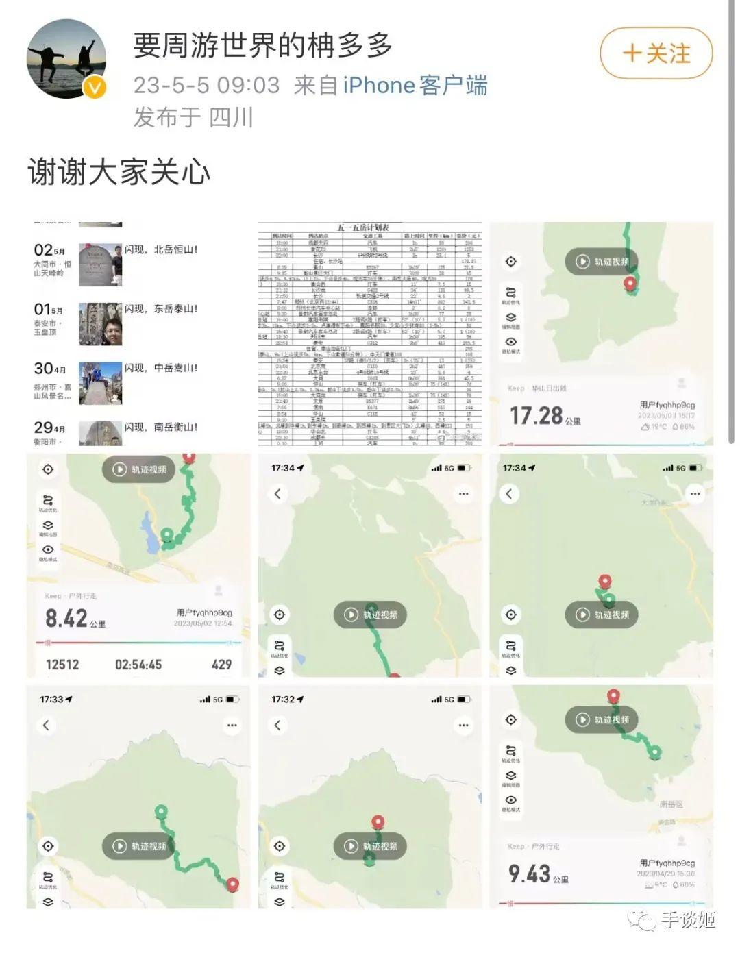 但若是五天连爬五座山,对于一般人的体力来说,恐怕也是难以消受的。网络上还有3天连爬五岳的,只不过爬山中途使用了缆车道具,给观众的感觉就没有这位柟多多走步侠给人的印象深刻。