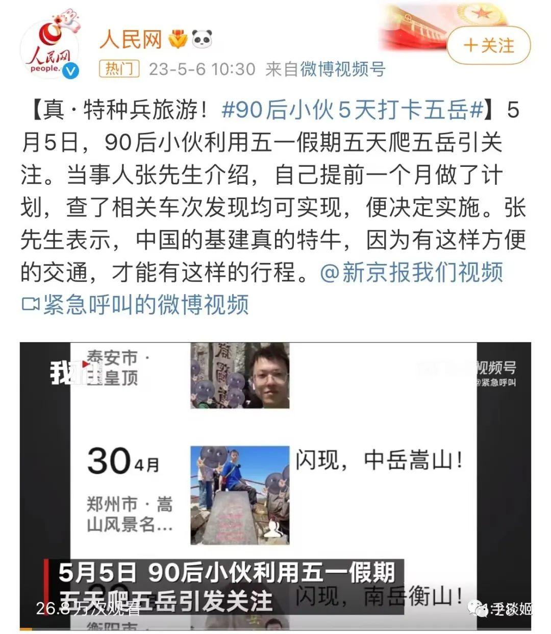 在微博上,则是一名“五一假期五天爬五岳”的网友引起了大家的关注。手谈姬先带大家复习一遍初中地理知识,五岳分别位于河南、山东、陕西、湖南、山西五个省份。这要是放在高铁尚未开通前,5天怕不是只坐绿皮火车了,哪还有时间爬山?