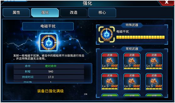 电磁干扰:发射一枚电磁干扰弹,被击中的战舰将会不分敌我进行攻击,并且特殊武器无法使用。