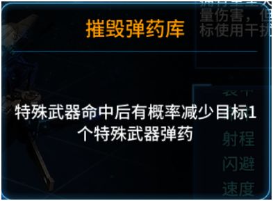 摧毁弹药库:特殊武器命中后有概率减少目标一个特殊武器弹药;