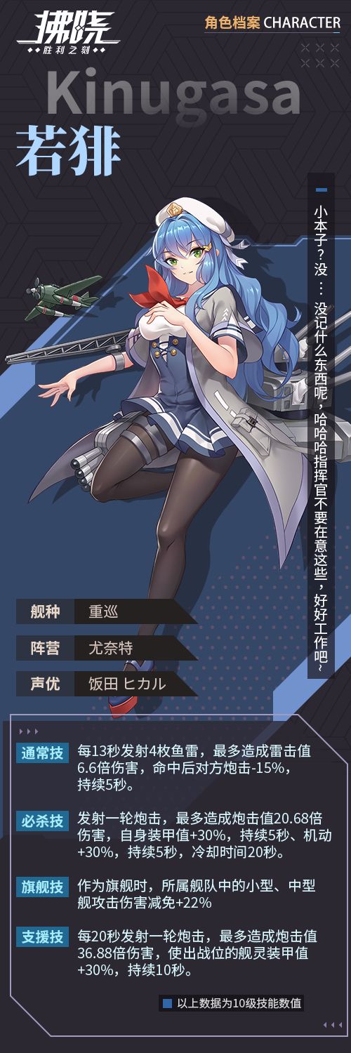 见识过新技术的厉害,对科技有推崇。虽然不喜欢闪灵,但还是会偷偷去想办法打探她的一些研究进度,由于八卦心严重,暗中被收编进了港区八卦小组。