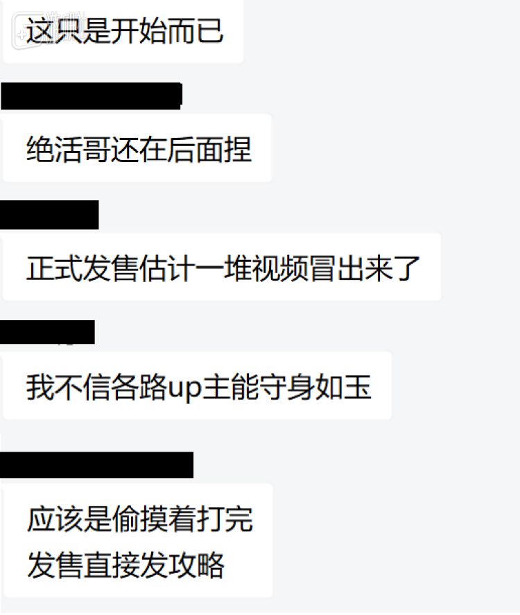对于游戏主播和UP们,还有个更现实的问题摆在眼前:备受关注的游戏就在这里,不论是要做攻略还是速通或是整活,越早开始玩就能越早准备素材,不偷跑就可能落后,关系到的是自己的事业……