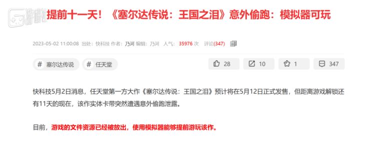 即便游戏媒体对相关讯息避而不谈,其他有关无关的媒体仍会推送 “《王国之泪》已被破解”的消息,
