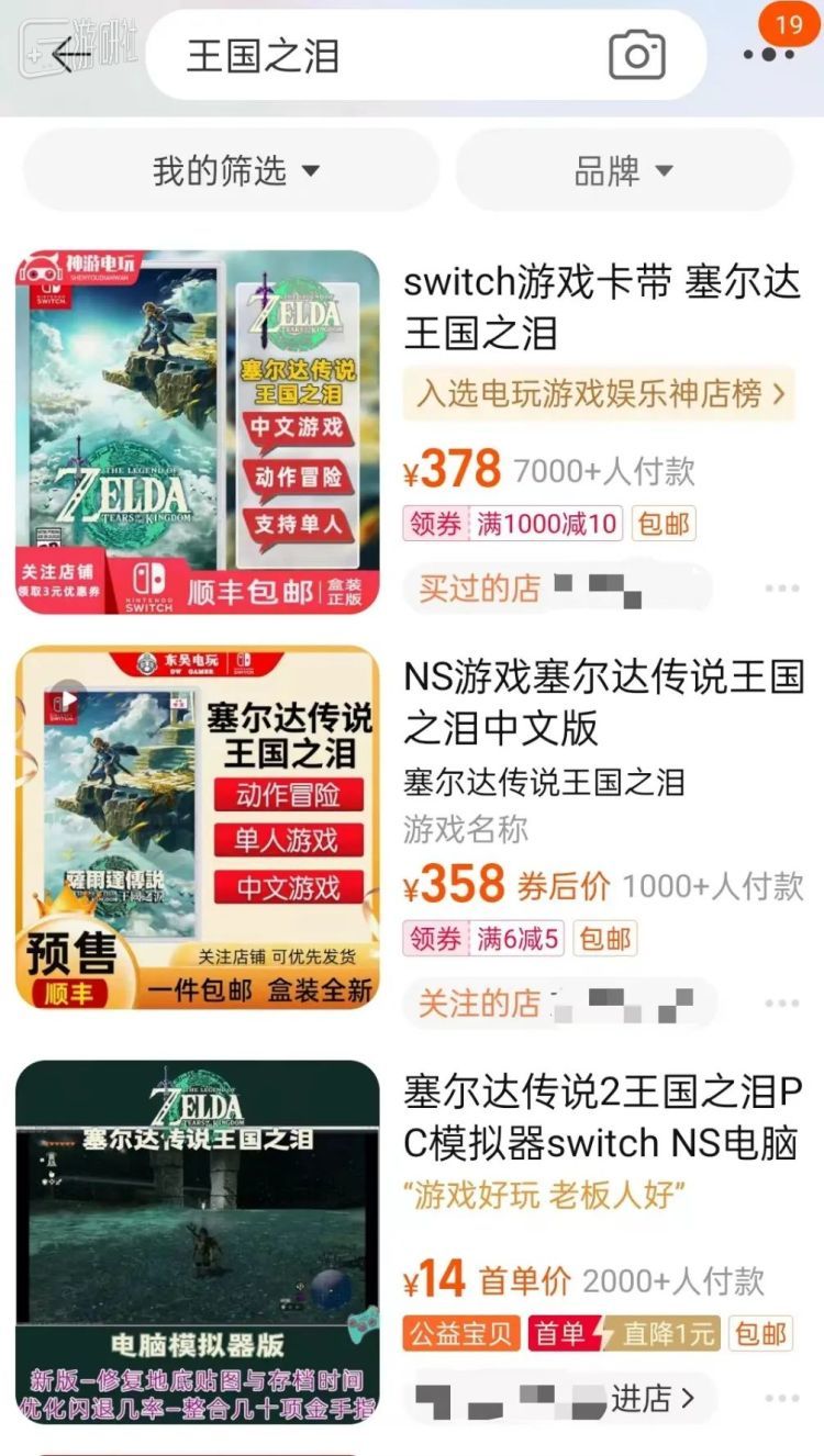 与此同时,在淘宝上搜索《王国之泪》,前排结果除了预售的卡带之外,还有店铺正在销售“《王国之泪》PC模拟器”,以20元的价格兜售在网络上可免费下载的模拟器与游戏Rom。