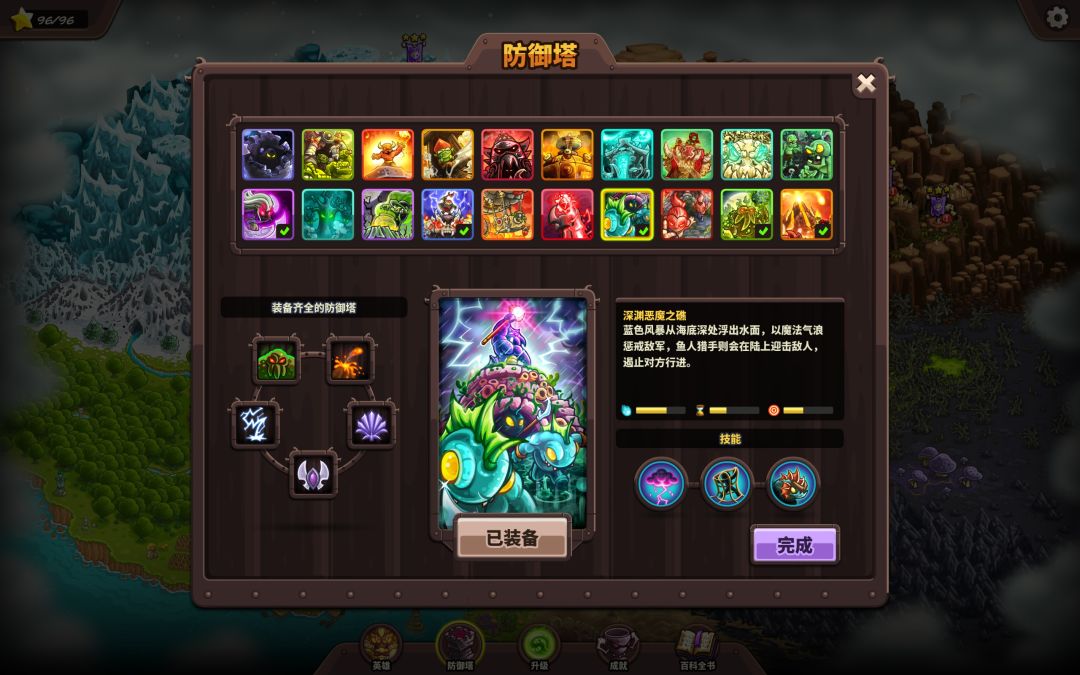 我在steam上补票后先休闲难度整体通关拿到全英雄和全防御塔,熟悉地图,并解锁<不可能>难度。