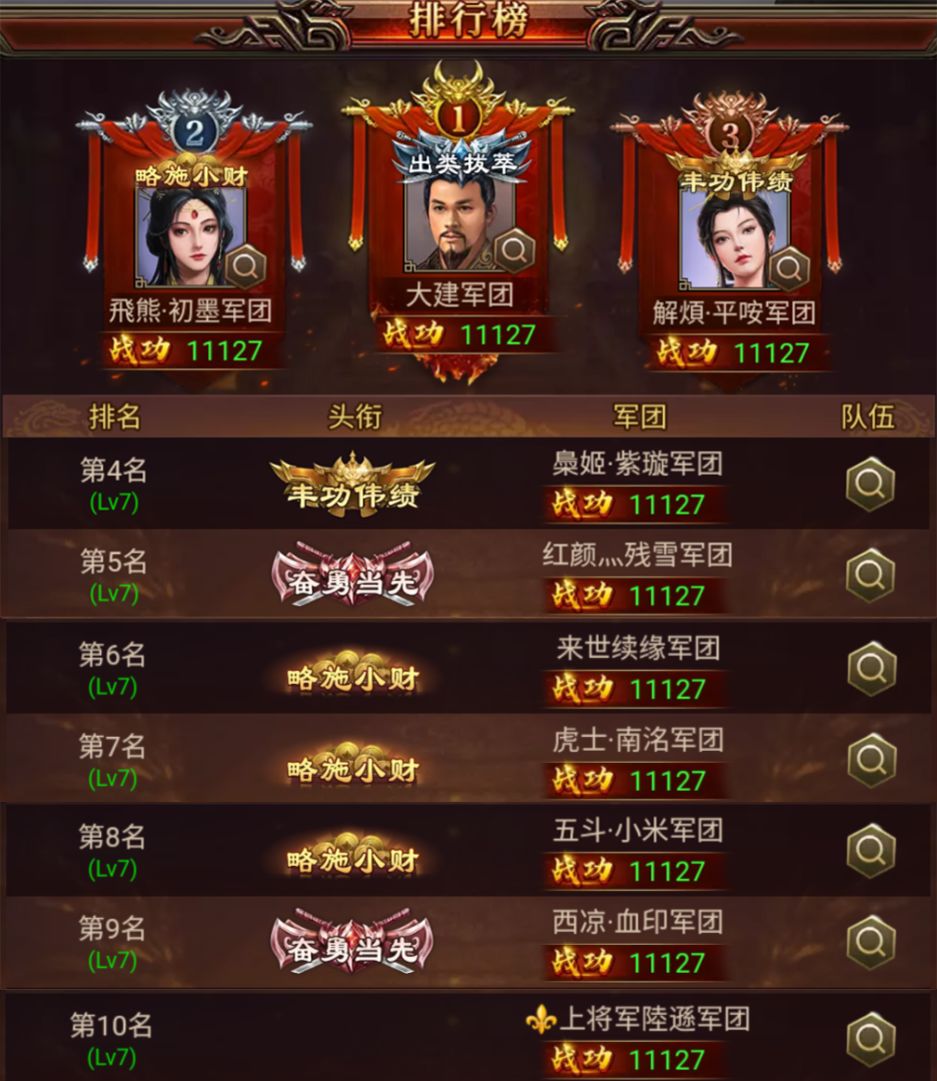 其中,“武将名 x%”代表该历史武将在本次战役的前十玩家中使用率为x%。