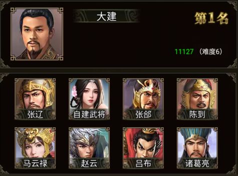 张辽、陈到、高览、马云禄、赵云、吕布和两位自建武将