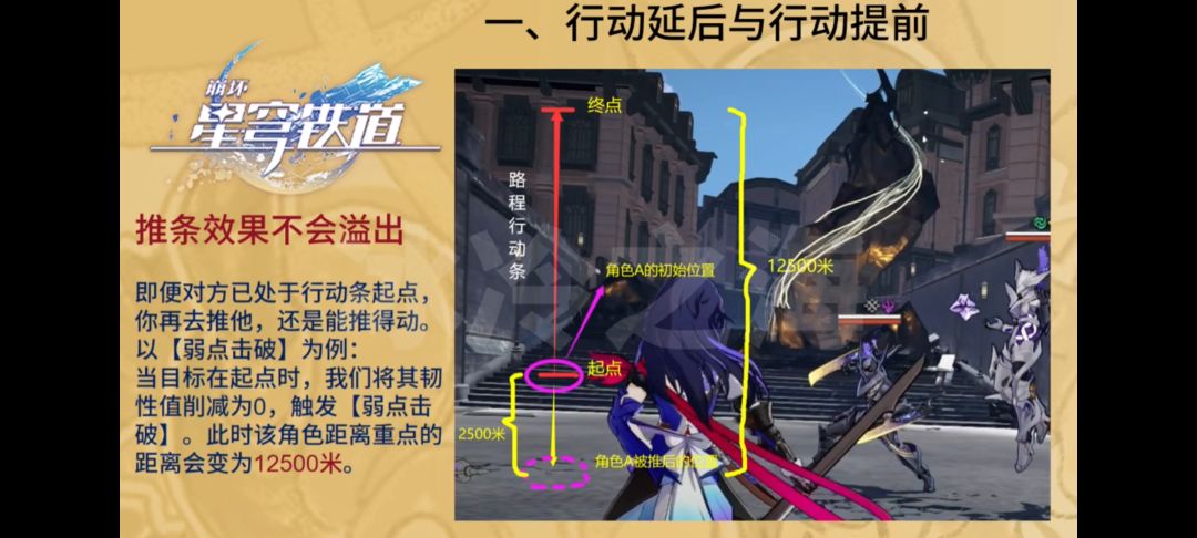 到这里大家就迷糊了,我直接综上所述,推条比拉条好,减速一回合还是两回合具体数值具体对待(这个需要大家计算收益,不一定完全适用),弱点击破很有用。